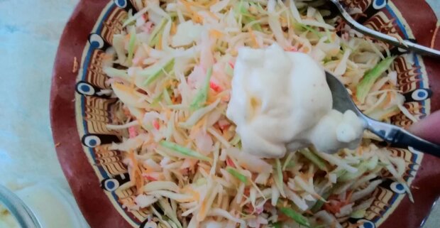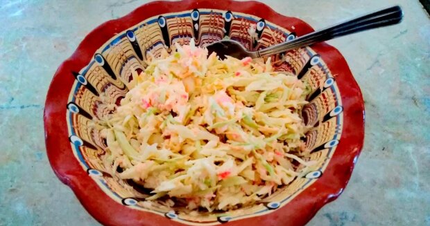 Jednou, po nějaké dovolené, jsem polovinu balení krabích tyčinek nevyužila. Otevřené obaly je nutné využít co nejdříve, jak víte. Zbylo mi k tomu pouze zelí. Bylo dost tvrdé, ale jsme na ně zvyklí. Ať se stane cokoli! A přidala jsem k čerstvému zelnému salátu jemně nasekané krabí tyčinky. Náhle se ukázalo, že je to velmi chutné. Nyní je tento salát u nás doba často připravovat.