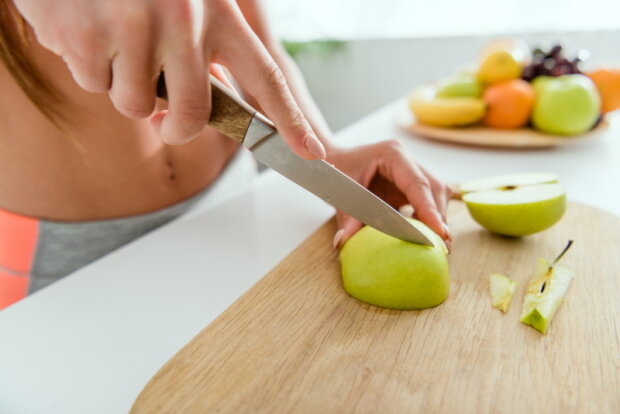 Omyjeme zelené jablko, nakrájíme na proužky.