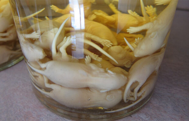 Číňané se rozhodli, že je obtížné dostat gekona, a rozhodli se jej nahradit malými myšmi. Tento nápad se také líbil Korejcům. Malé holohlavé myši, stále živé, se dostanou do láhve rýžové vodky, kde celý rok probíhá kvašení. Nápoj chutná jako benzín.