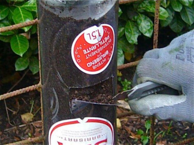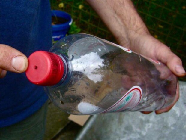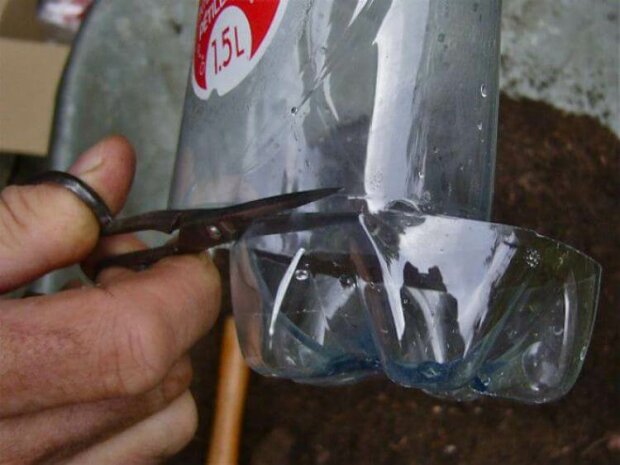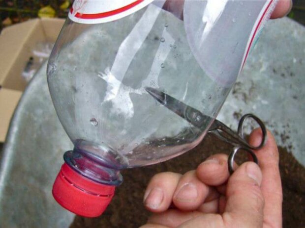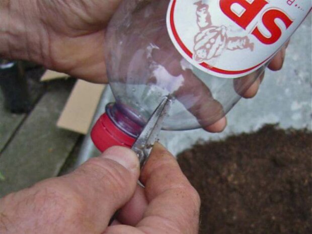 Vytvoříme malý otvor v plastu ve vzdálenosti 5-10 cm od krku.