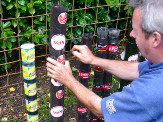 A aby se dosáhlo maximálního výsledku na minimální ploše, důchodce doporučuje kombinovat lahve v takzvaných věžích. Zde je návod, jak na to.
