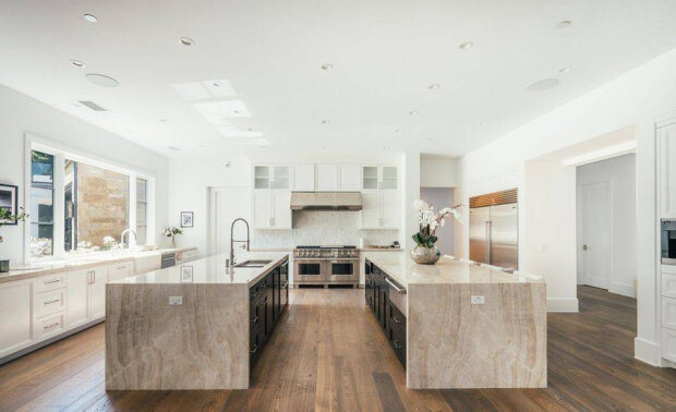 Dům má sedm ložnic a devět koupelen, stejně jako obrovskou kuchyň pro kuchaře, bar a vinný sklípek pro hlučné párty