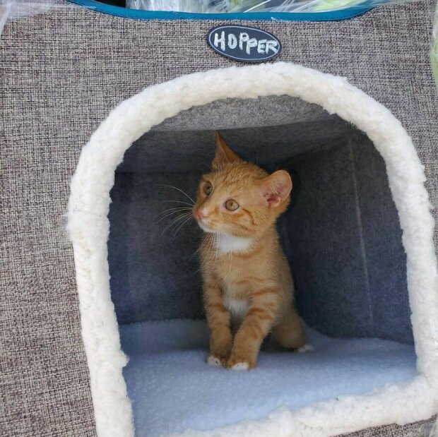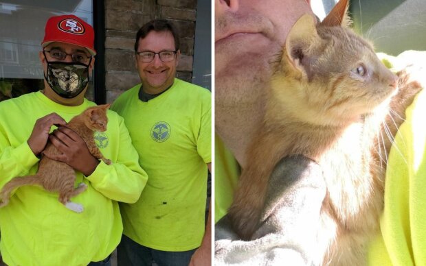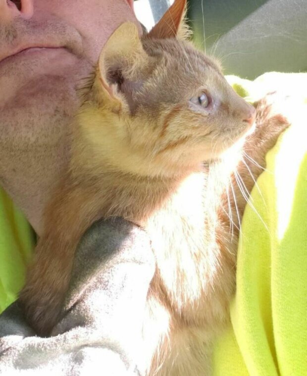 Muži vzali chudáka a hledali další kočky. Ale kotě bylo jediné. William odstranil z oka kotěte špínu a přitiskl si ho na hruď, aby ho uklidnil. Pracovníci pojmenovali kotě Hopper.