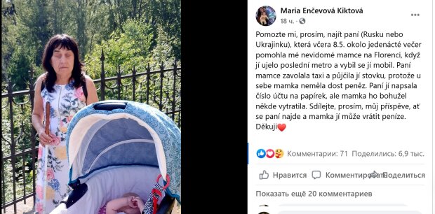 "Prosím, pomozte mi najít ženu (ruskou nebo ukrajinku), která 8. května ve 23:00 pomohla mé slepé matce na Florence, která se opozdila na poslední vlak a její telefon byl vypnutý."