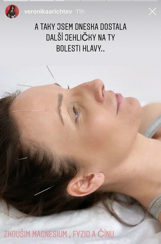 Herečka prozradila, že zkouší magnesium, fyzioterapie, přidala také "čínu" a začala chodit na akupunkturu. “Nyní také dostávám jehličky na bolesti hlavy”- říká Veronika.