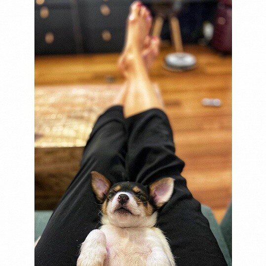 “Teď tady budu chvilku otravovat fotkami štěně”- napsala Sandra na Instagramu.