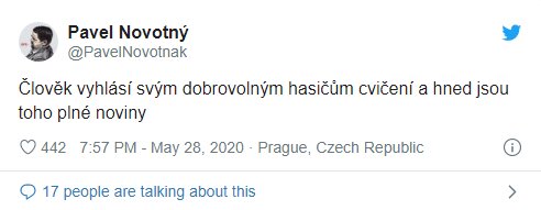 Na svých sociálních stránkách jen propsal komentář: „Člověk vyhlásí svým dobrovolným hasičům cvičení a hned jsou toho plné noviny.“