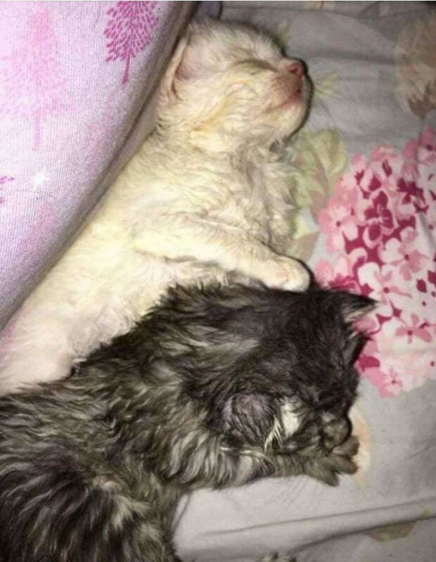 Později dívka uhodla důvody, proč koťata ležela právě takhle. Ukázalo se, že jedna z koťat, dívka, přišla na svět nemocná. Nemohla sama chodit a ani držet hlavu. Její dva sourozenci se snažili sestře pomoci všemi dostupnými prostředky.