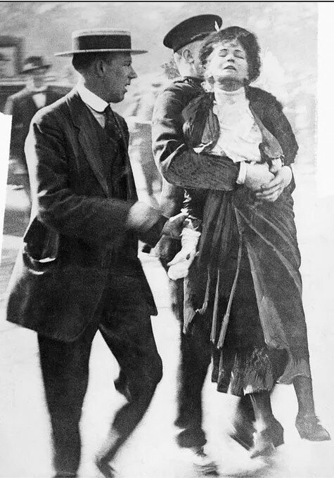 Zatčení sufražetky Emmeliny Pankhurstové v roce 1914. Do okamžiku, kdy americký Kongres zakáže diskriminaci v sexuálních volbách, zbývá ještě 6 let.