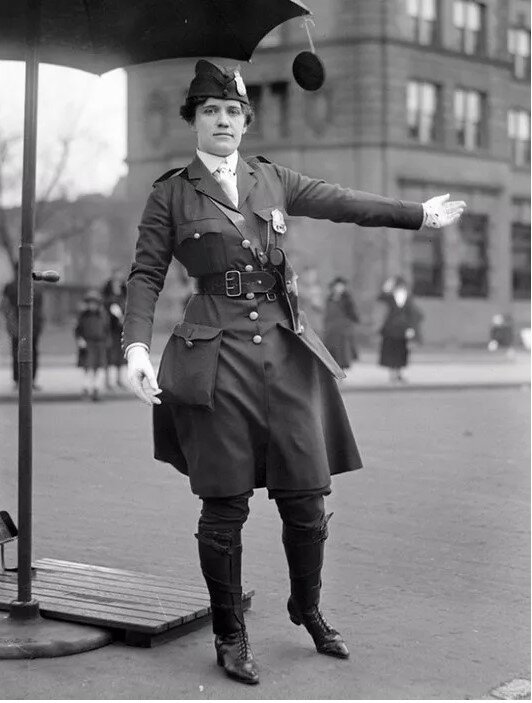 První žena-policista ve Washingtonu (1918). Regulátorka.