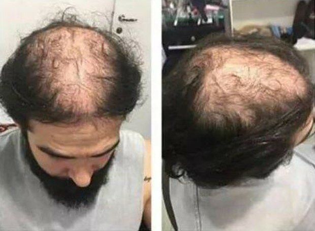 Jak se ukázalo, mnoho mužů používá gulki, aby skrylo známky plešatosti. Ten chlap opravdu postrádá vlasy na hlavě a potřeboval by nelidské úsilí, aby zakryl svou plešatou hlavu
