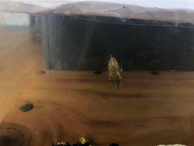 Během tří dnů si Cedric vybral místo na stěně Tupperware a začal tvořit kuklu.