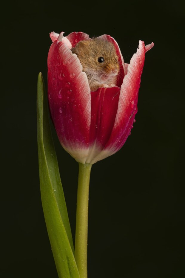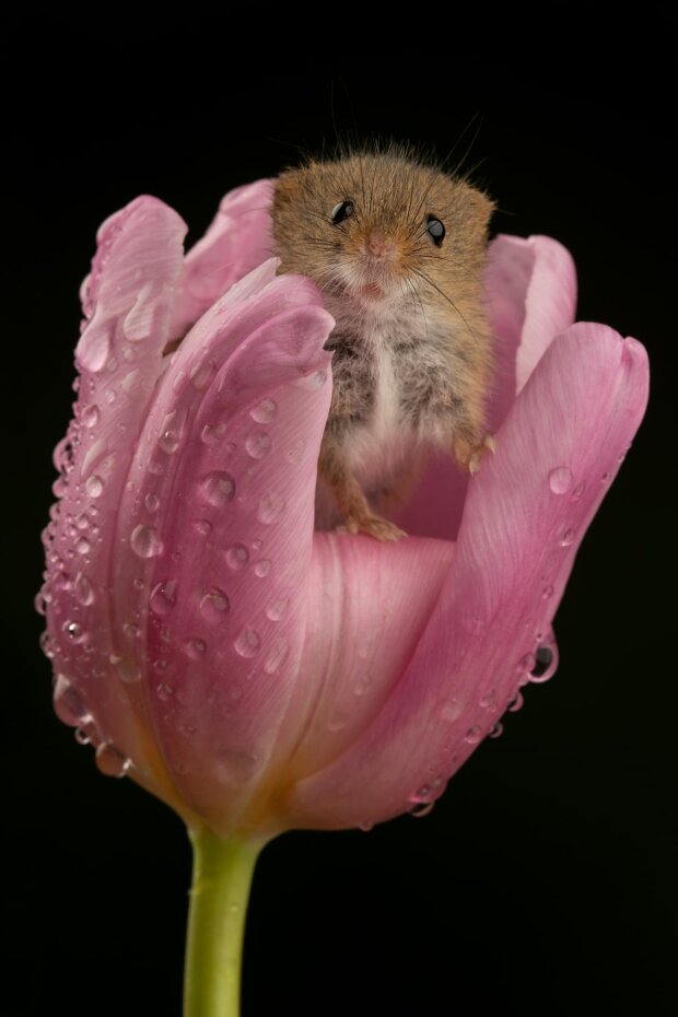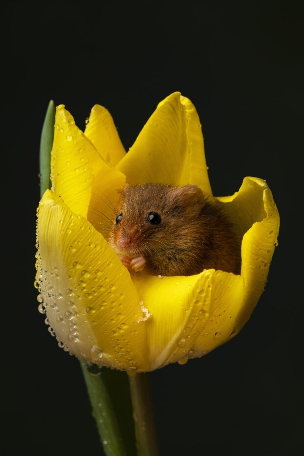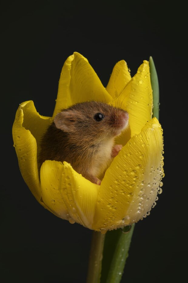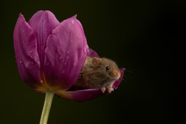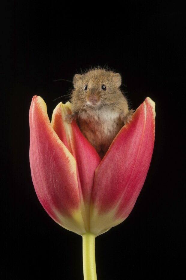 Snímky pořízené profesionálním fotografem Milesem Herbertem z CaptiveLight Photography zachycují hravé povahy těchto malých tvorů. Sklizňové myši jsou již samy o sobě roztomilé, ale jejich spolupráce s pulzujícími tulipány ještě víc zesiluje jejich kouzlo.