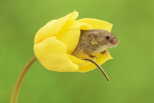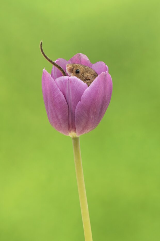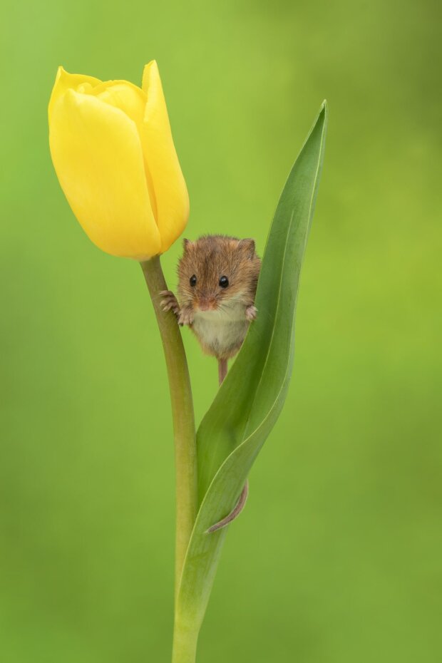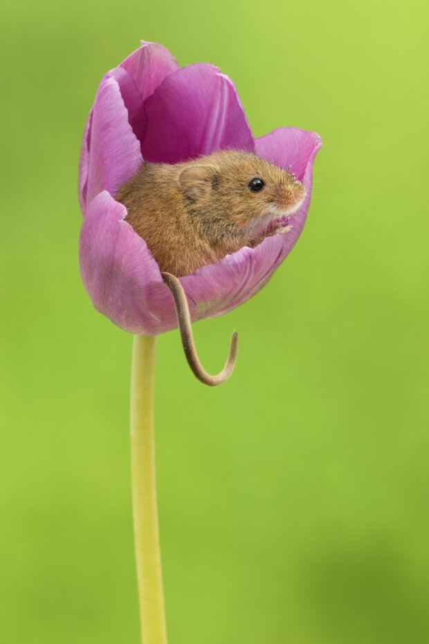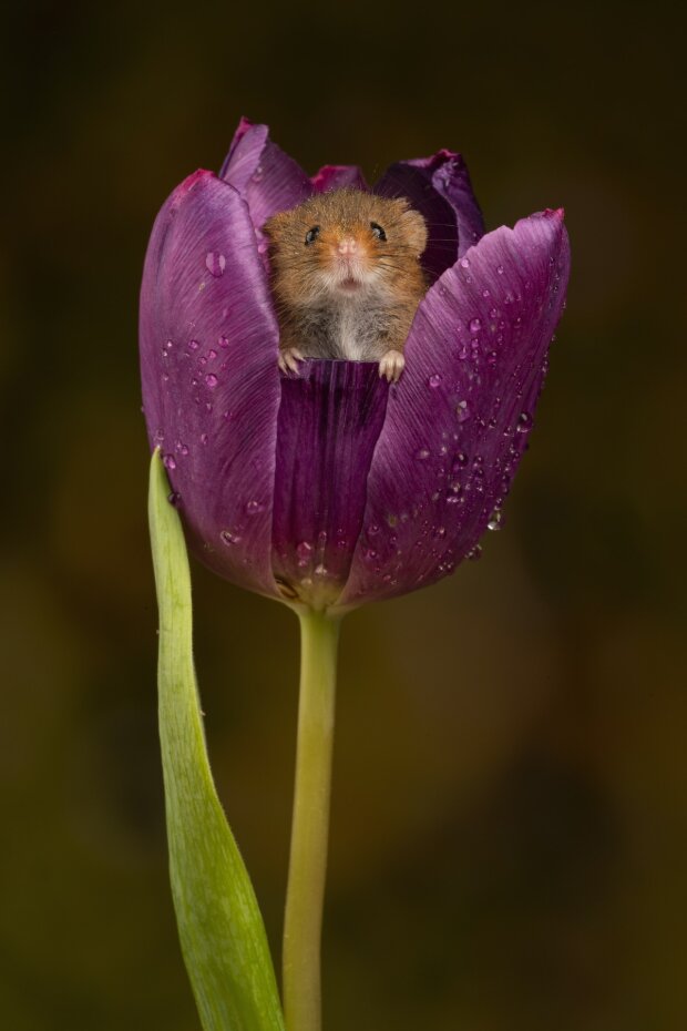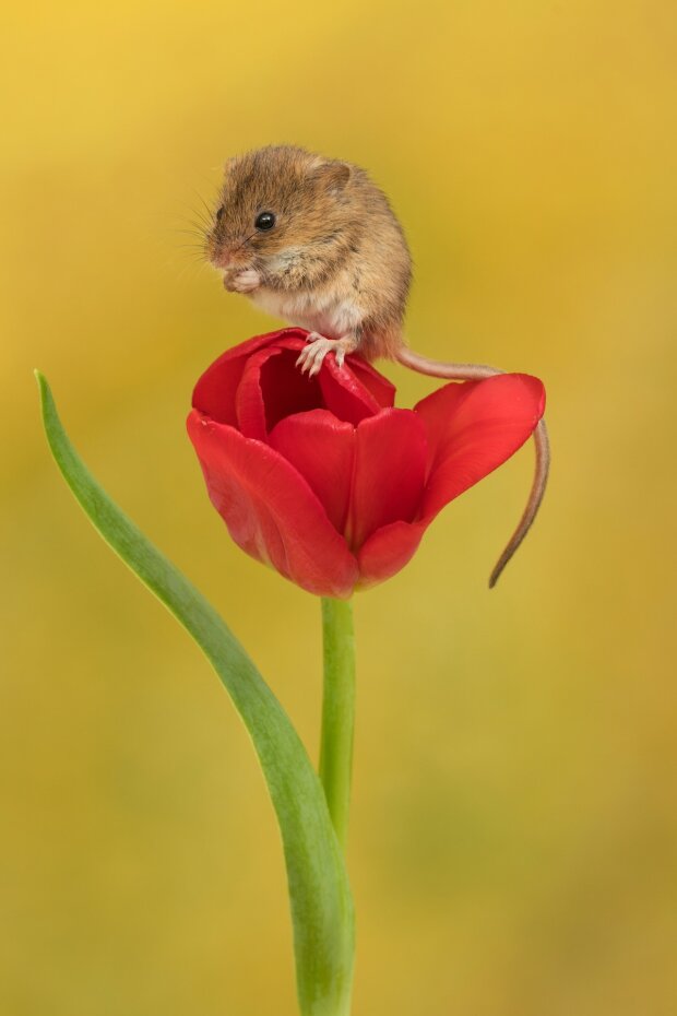 Snímky pořízené profesionálním fotografem Milesem Herbertem z CaptiveLight Photography zachycují hravé povahy těchto malých tvorů. Sklizňové myši jsou již samy o sobě roztomilé, ale jejich spolupráce s pulzujícími tulipány ještě víc zesiluje jejich kouzlo.