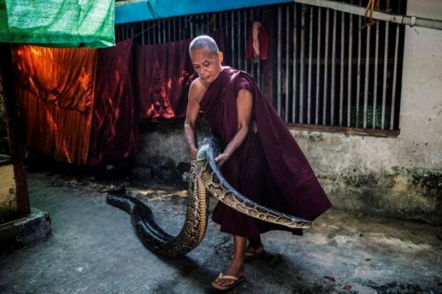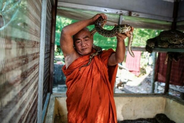 69letý mnich pomáhá při záchraně desítek hadů, od krajt až po zmije a kobry, které by jinak mohly být zabity nebo poslány na černý trh.