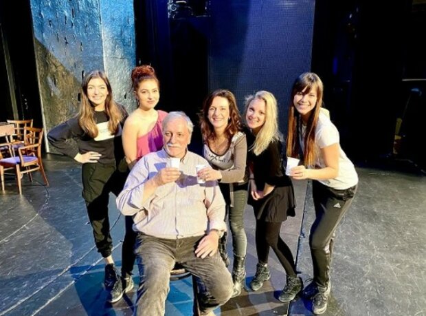 Herci muzikálu připravili pro Zdeňka Zelenku překvapení - gratulace a symbolický přípitek.