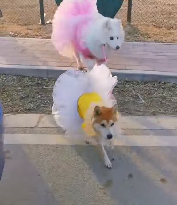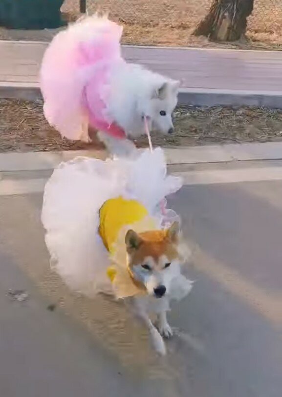 Ale když vede Manmeng na vodítku, je velmi něžná a vždy na ni bude čekat, jestli jdou nahoru nebo dolů po schodech," popsala majitelka psů.