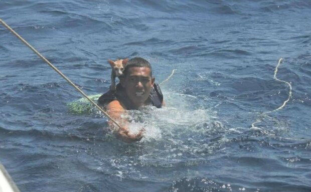 Mladík na svých bedrech dopravil všechna zvířata na palubu lodi námořnictva.