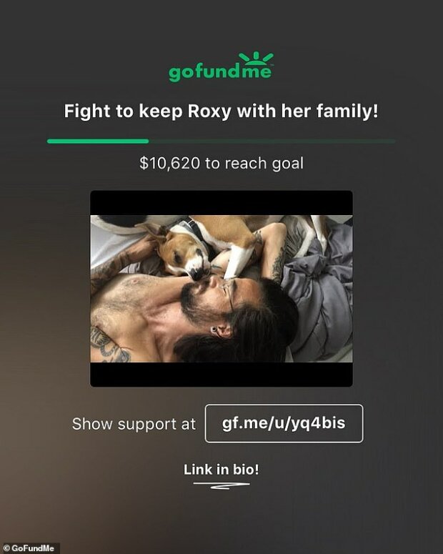 Mirikova manželka Joan vytvořila stránku GoFundMe, aby pomohla pokrýt část nákladů na bitvu o záchranu Roxyho.