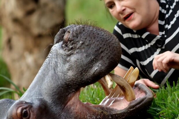„Táta“ a „máma“ se staraly o „dceru“ - hrocha, staraly se o ni a hýčkaly ji. Když dítě bylo větší, postavily pro ni na dvoře bazén. Ležící ve vodě zvíře mohlo pozorovat vše, co se děje na dvoře a v domě.