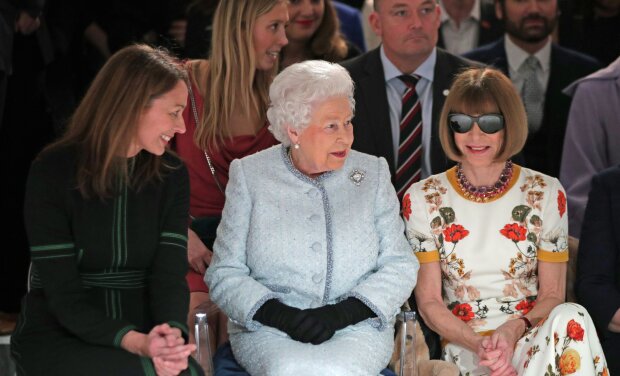Alžběta II se setkala s legendární redaktorkou Vogue Annou Wintour nikoli na oficiální recepci, ale na módní přehlídce Richard Queen.