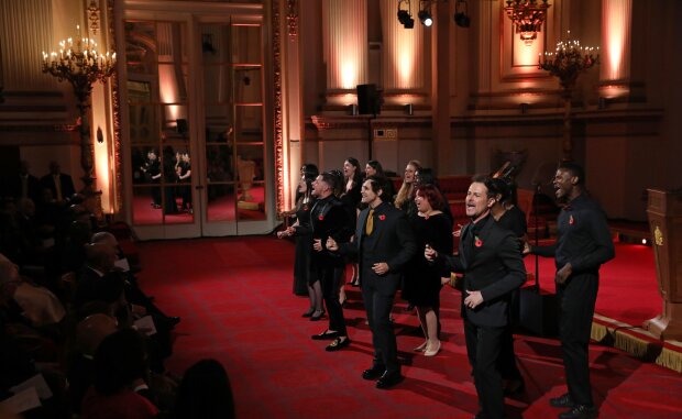 Král Karel III. vyslechl vystoupení Westend Gospel Choir v tanečním sále Buckinghamského paláce.