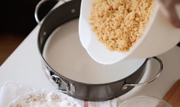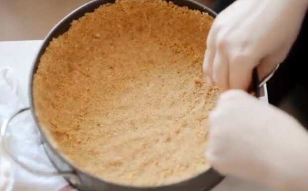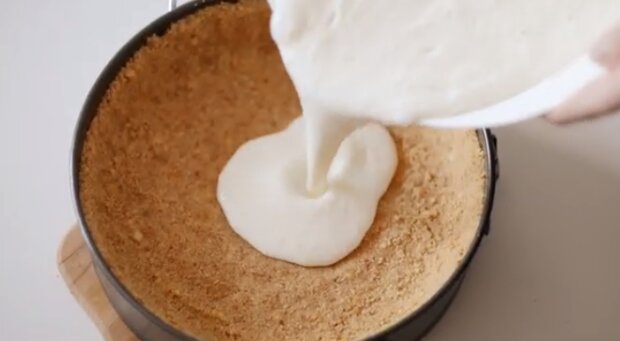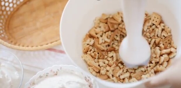 Všechny ingredience na biskvit rozšleháme v mixéru a vložíme mokrýma rukama do formy pokryté potravinářskou fólií.