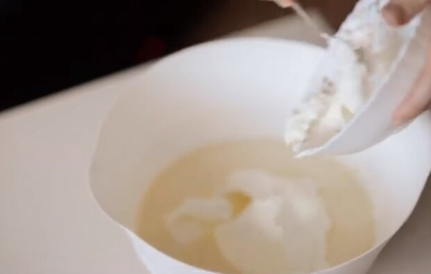 Tvaroh, želatinu, vanilin a sladidlo rozšleháme v mixéru.