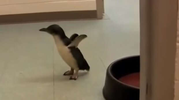 Tučňák, kterého zaměstnanec školky na videu označuje za Kuky, reaguje na svou přezdívku a přiblíží se k muži, který začíná škrábat měkké bříško a záda ptáka.