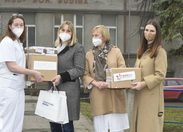 Společně s Davidem Novotným, který je ředitelem soutěže Anděl mezi zdravotníky, předala roušky, rukavice, desinfekce a doplňky stravy v nemocnici na Bulovce.