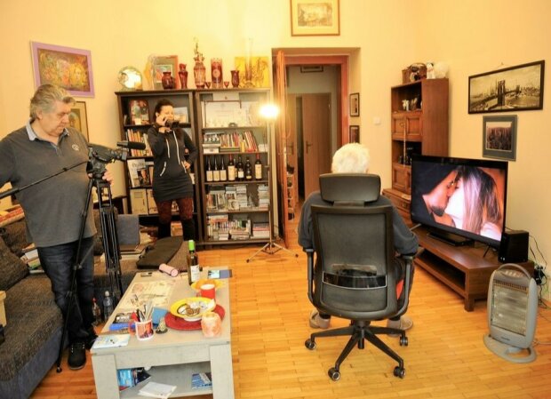 Kvůli vládním omezením se netočilo ve studiu, ale u Krampola doma.
