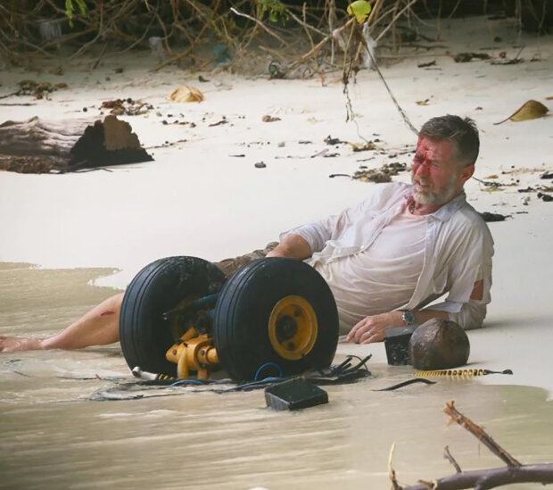 A ve filmu se Jiří Langmajer po havárii letadla ocitne spolu se svou filmovou manželkou Janou Plodkovou na opuštěném ostrově.