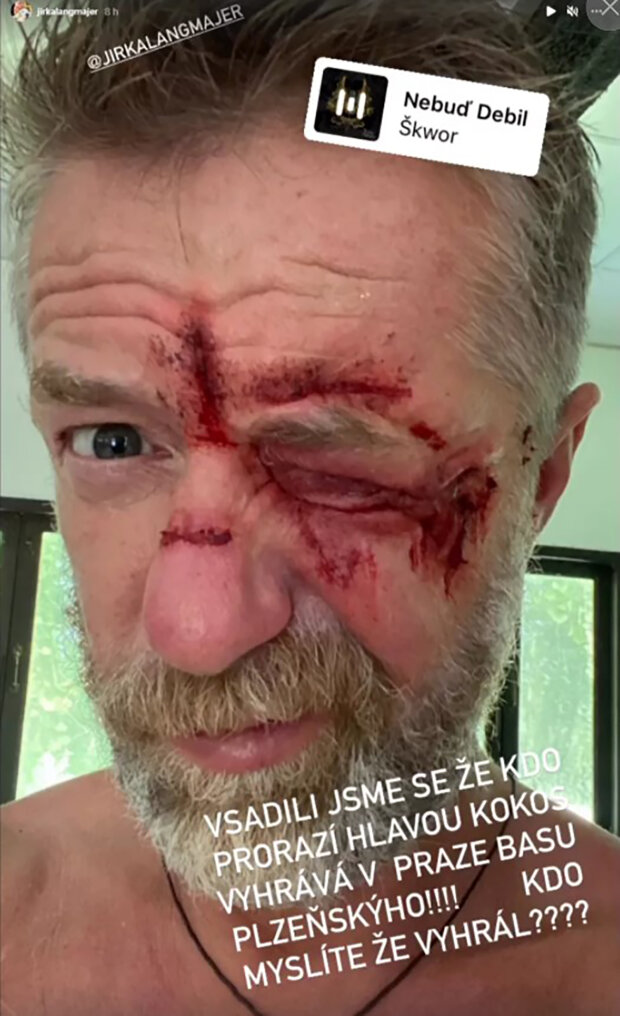 „Vsadili jsme se, že kdo prorazí hlavou kokos, vyhrává v Praze basu plzeňského! Kdo myslíte, že vyhrál?“ řekl.