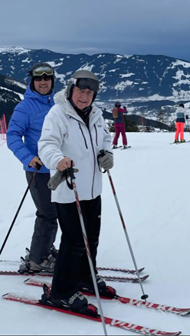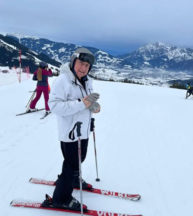 Hudebník si užívá dovolenou v Alpách. Podle svých slov lyžuje, jí rakouské speciality, pije víno.