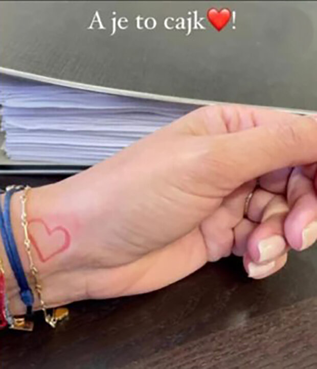 Teresa Brodska zvolila barvu na tetování nikoli klasickou modrou, ale červenou.