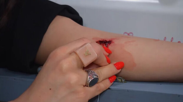 Maskéři jí vykouzlili na ruce velmi věrohodnou krvavou ránu. Podle herečky, když Robert Urban viděl tu ránu, ztratil vědomí.