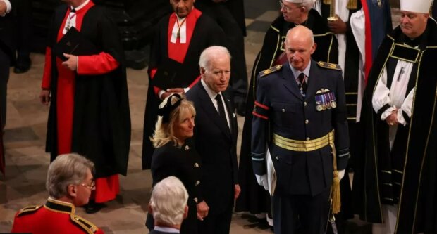 Americký prezident Joe Biden a jeho manželka Jill přijíždějí do Westminsterského opatství.