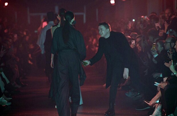 Šťastný a hrdý na svou milovanou Petr nebyl schopen zdržet své pocity a během samotné přehlídky vyskočil na podium.