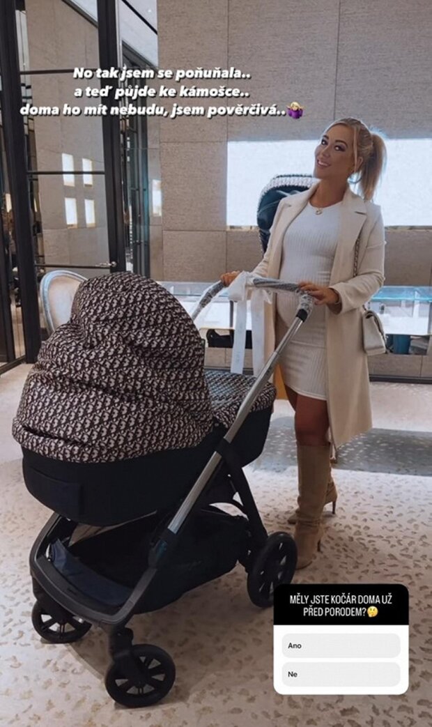 Na svém instagramovém účtu se s fanoušky podělila o chvíle, kdy kočárek nakupovala a přiznala, že je pověrčivá a zatím ho nebude mít doma, aby jí nepřinesl smůlu.