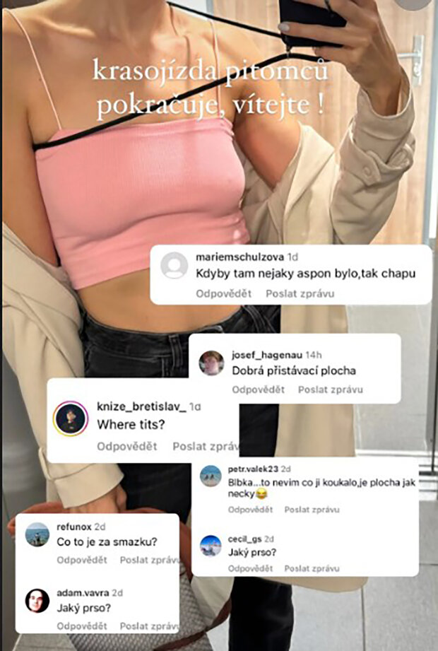 Samozřejmě netrvalo dlouho a pod fotkou se objevily komentáře haterů.