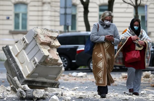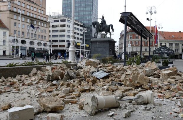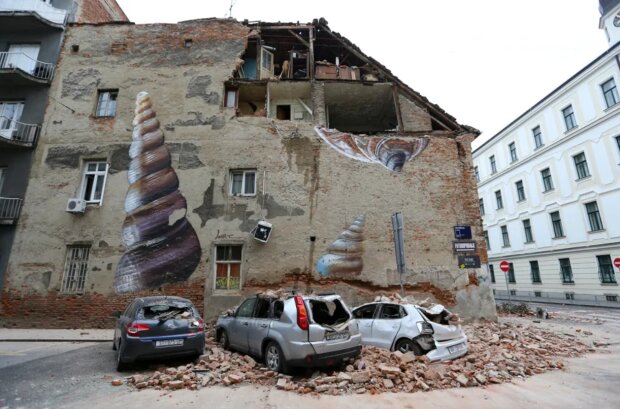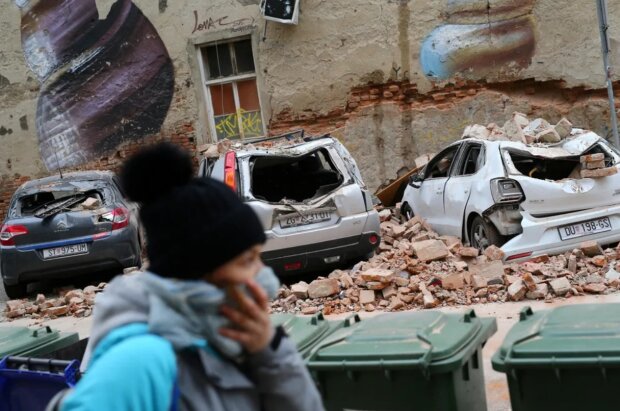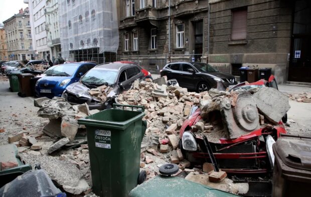 Následky zemětřesení v Záhřebu - poškozená auta a zničené domy