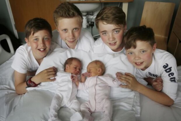 Do třetího těhotenství vychovali 4 syny: Finn a Jude, 12 let, a Lewis a Kyle, 14. Rodiče samozřejmě po čtyřech chlapcích chtěli dívku.