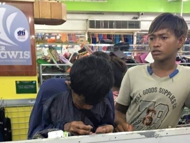 Starší otec přivedl svého dospívajícího syna do obchodu, aby mu koupil boty. Když si vybrali krásné boty, šli zaplatit na pokladnu.
