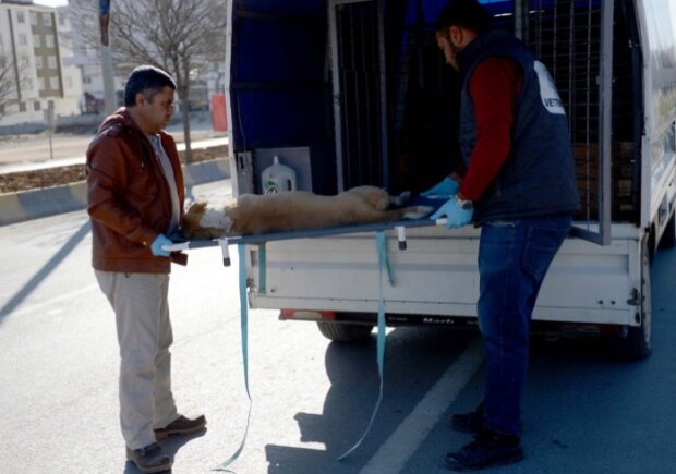 Nakonec dorazila skupina záchranářů a naložila zraněné zvíře do kamionu, aby ho okamžitě poslala veterinárnímu lékaři.
