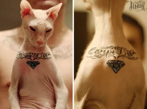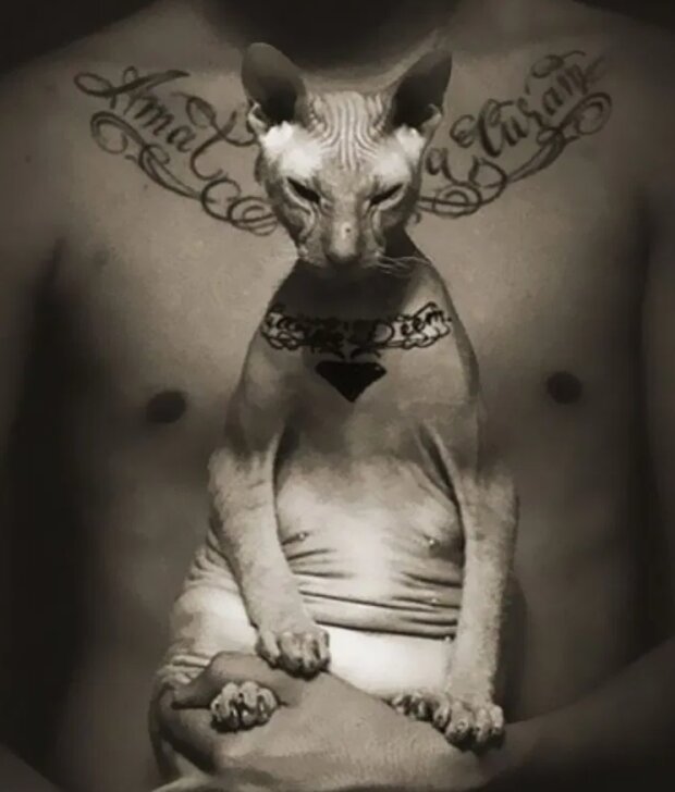 Jiný ruský tater udělal svému sphynxovi tetování podobné jeho.