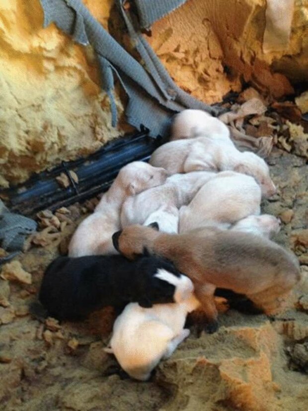 Pes ignoroval silnou bolest v tlapách a jen velmi rychle někam vedl. Lidé šli s ní asi 3 kilometry, a nakonec pochopili důvod tohoto chování zvířete. Na útulném místě bylo deset malých štěňátek a byli velmi rádi, když viděli svou matku zpět.