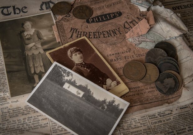 Certifikát z roku 1894, noviny z roku 1917, dokumentace popisující kolaps Titanicu v roce 1912, fotografie, pohlednice, starožitné plechovky, parfémy, kosmetika, léky, kapesní hodinky a mnoho dalšího! To vše se zachovalo.