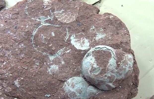 Skutečně se ukázalo, že se jedná o starověké vajíčko, ale nebylo jedno - vědci na tomto místě našli ještě 11 vajec. Pravděpodobně tady bylo dinosauří hnízdo.