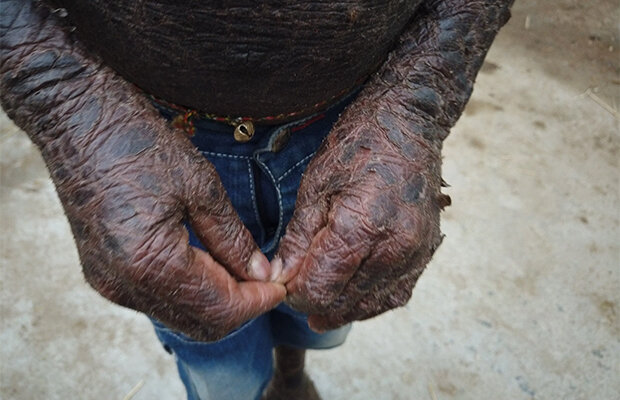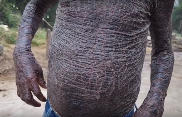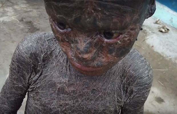 Dětská pokožka se málo podobá lidské, ale spíše hadí kůži. Je velmi sucha, loupe se a připomíná šupiny. Kromě toho chlapec každých šest týdnů přichází o kůži.