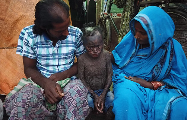 Desetiletý Jagannatha, aby zmírnit bolestivé příznaky se musí každou hodinu vykoupat a každé tři hodiny nějak si pokožku zvlhčit.